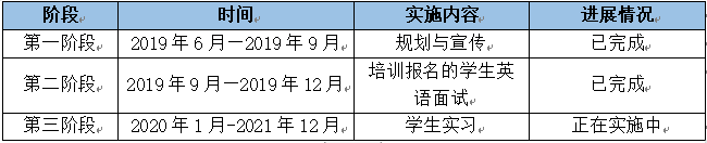依据说明:     3.4.1 合作办学 与国(境)外高水平院校开展多边人才交流,共建科技研发平台、培训平台或实习就业平台等合作项目,并取得实效。与马来西亚AGENSI PERKEJAAN CAREER MILESTONE SDN BHD开展合作“大学生海外带薪实习项目”,跨国企业直接签署实习协议。跨国公司全英文工作环境,全面提升职场技能,为学生提供高品质就业。目前该项目均按预期计划实施: