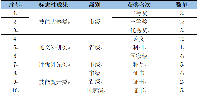 表2-5-6-1 教师队伍标志性成果一览表