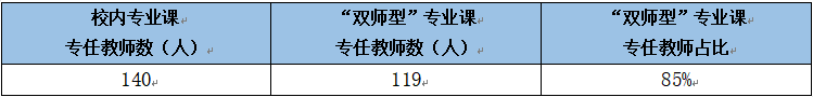 依据说明: 2.5.1 生师比17.98:1 2021年我校专任教师140人,聘请校外兼职教师37人。2020-2021学年聘请校外教师承担的教学总学时为5440学时,校内专任教师人均教学学时数为324学时。按考核计算标准,折合聘请校外教师有效数为16.79人,折合教师总数为156.79人。2021年普通高职在校学生数为2819人,生师比为17.98:1。 2.5.2 “双师型”专业课专任教师占比85% 学校已构建完善的教师专业发展的支持系统,制定了《双师素质教师队伍管理办法》,高度重视教师专业发展,成立教师发展中心,广开“双师型”培训渠道:一是鼓励教师参加职业技能培训并取得相关职业资格等级证书;二是落实教师定期实践轮训制度,强化校企合作办学;三是要求各系有计划地安排专业教师到对口企业进行专业实践锻炼,同时,在工资待遇、年度考核等方面,向具备“双师”素质的教师倾斜,助力教师素质的全面提升。2021年我院被认定为双师素质专任教师119人,占85%。 表2-5-2-1 2021年“双师型”专业课专任教师占比统计表