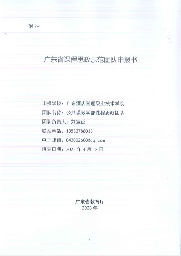 - 广东省课程思政示范团队申报书-公共课教学部课程思政示范团队-刘宣延